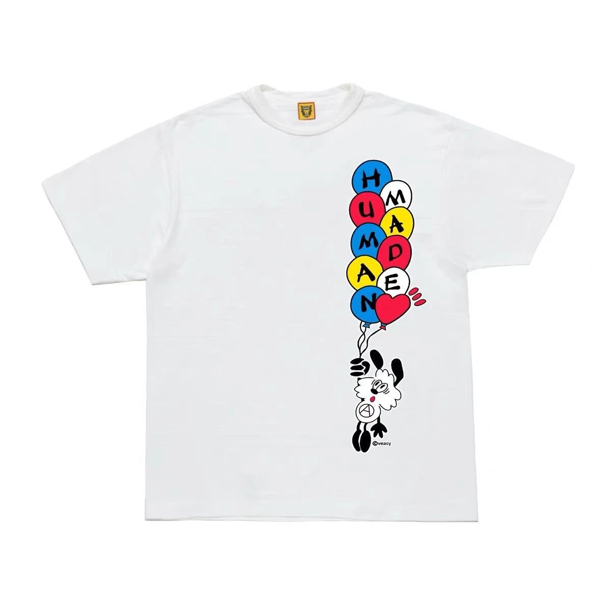This is a white short-sleeve T-shirt from the balloon print series of **HUMAN MADE**, Japan’s top streetwear brand. Crafted from heavyweight pure cotton fabric, it is skin-friendly, breathable, structured and resistant to deformation. The print adopts firm and clear screen printing technology, featuring a retro and playful street style. Highly versatile, it matches all kinds of bottoms and is suitable for both daily outings and commuting. As a well-received popular entry-level item in the trend circle, it is deeply sought after by fashion enthusiasts worldwide.
