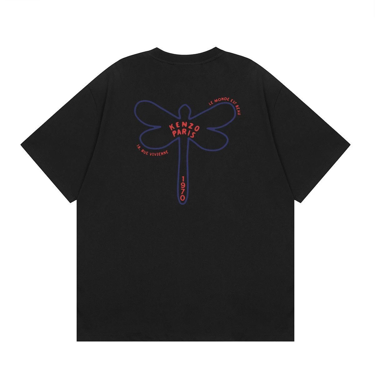 KENZO Dragonfly Print Trendy Style Black T-shirt