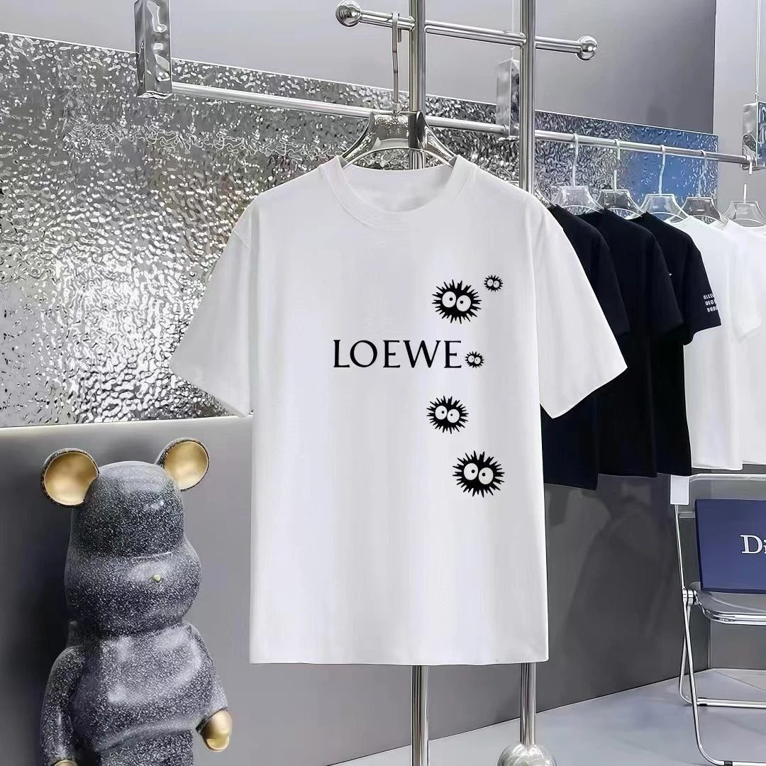 LOEWE Elf Co-Branded Series Trendy White T-Shirt. Crafted from heavy-weight skin-friendly pure cotton, its iconic elf pattern is produced with high-definition digital direct printing technology, which is not easy to fade or crack. Featuring a relaxed, sophisticated cool street style, it is simple, clean and easy to match, suitable for daily commuting and casual outings. As an extremely popular hot co-branded item among the trendsetter circle, it is deeply sought after by fashion lovers.