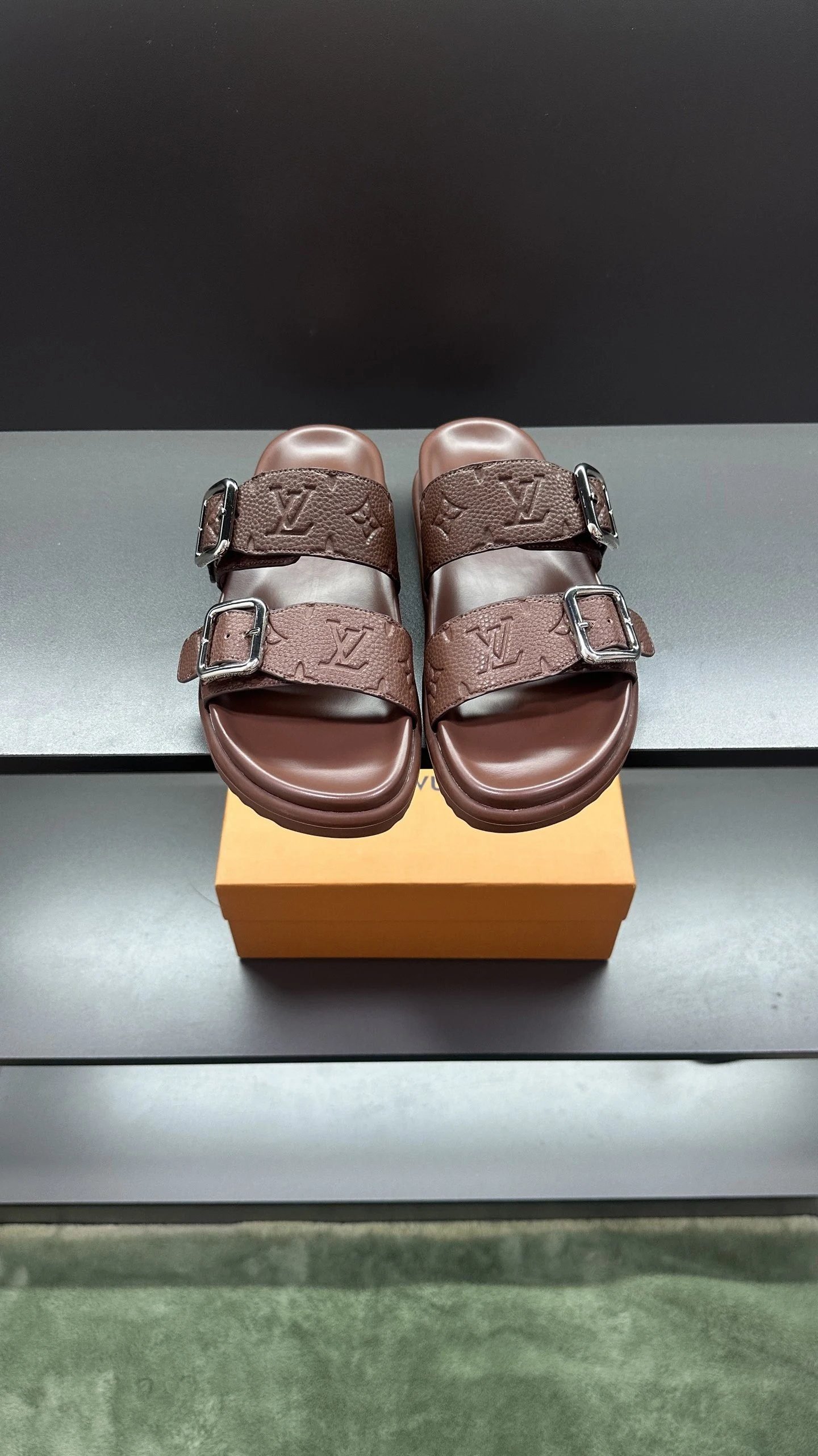 Louis Vuitton Classic Embossed Collection Brown Light Luxury Slippers. The upper is made of top-layer cowhide, featuring the brand’s iconic embossing process with clear texture. Equipped with a non-slip and wear-resistant rubber outsole, this slipper boasts a versatile retro light luxury style. As an enduring classic of the brand, it is deeply sought after by trendsetters around the world, and is suitable for both home wear and street outing.