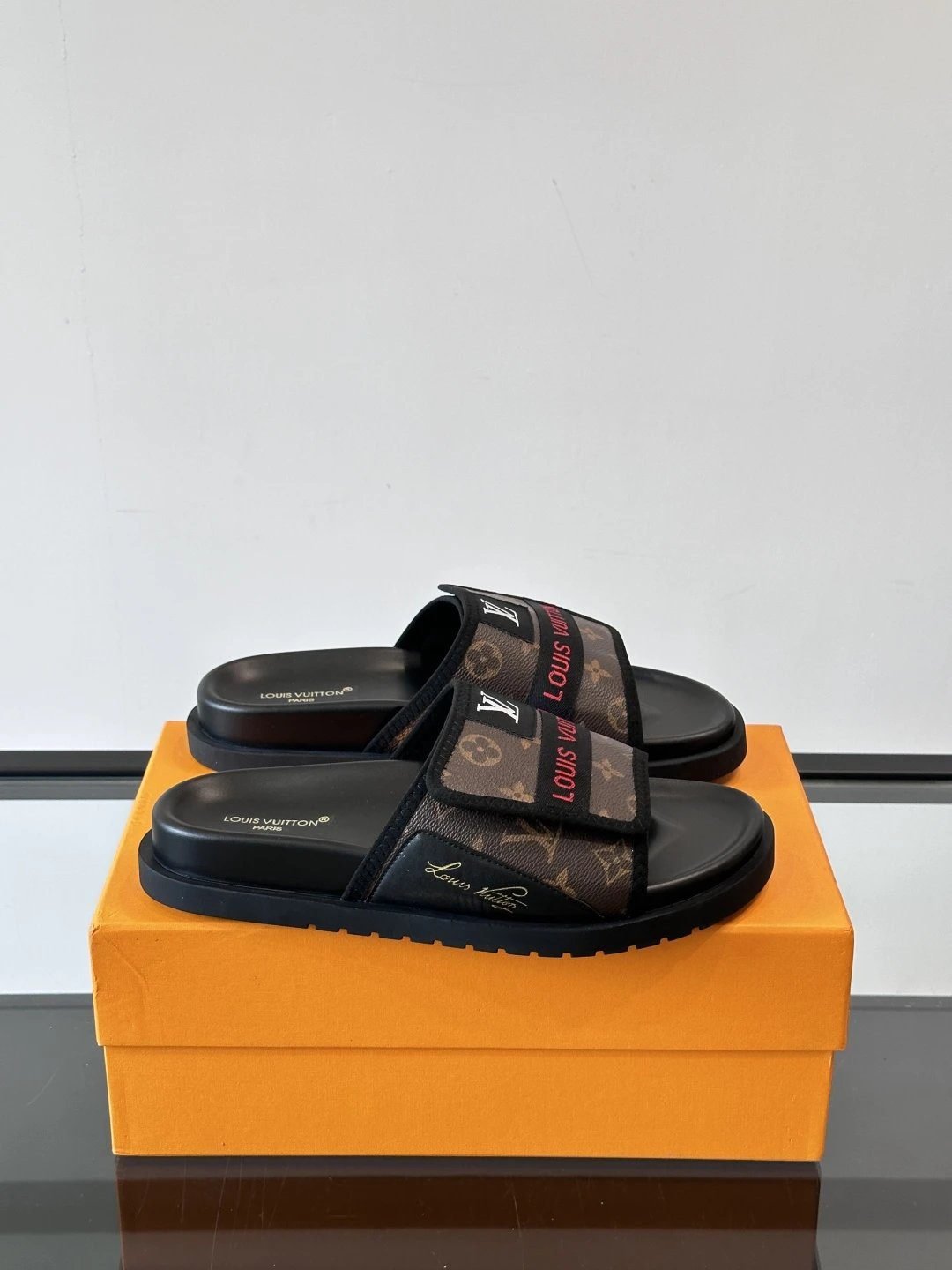 Louis Vuitton Classic Monogram Light Luxury Style Brown and Black Slide Sandals