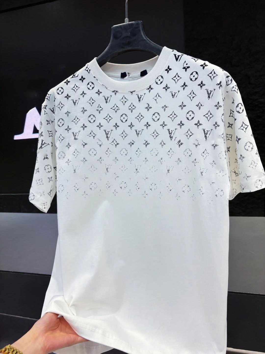 Louis Vuitton Classic Monogram Collection Premium White T-Shirt. Crafted from selected heavy-weight high-count pure cotton fabric, it is breathable, skin-friendly, well-structured and resistant to deformation. Featuring precise-aligned monogram printing technique, it boasts clear and durable patterns that do not fade. Vintage and stylish, it fits all body types and is versatile for daily commuting and casual outings. As an evergreen classic casual item from LV, it has long been sought after by fashionistas around the world, and is a highly reputed entry-level piece for entry-luxury trendy styling.
