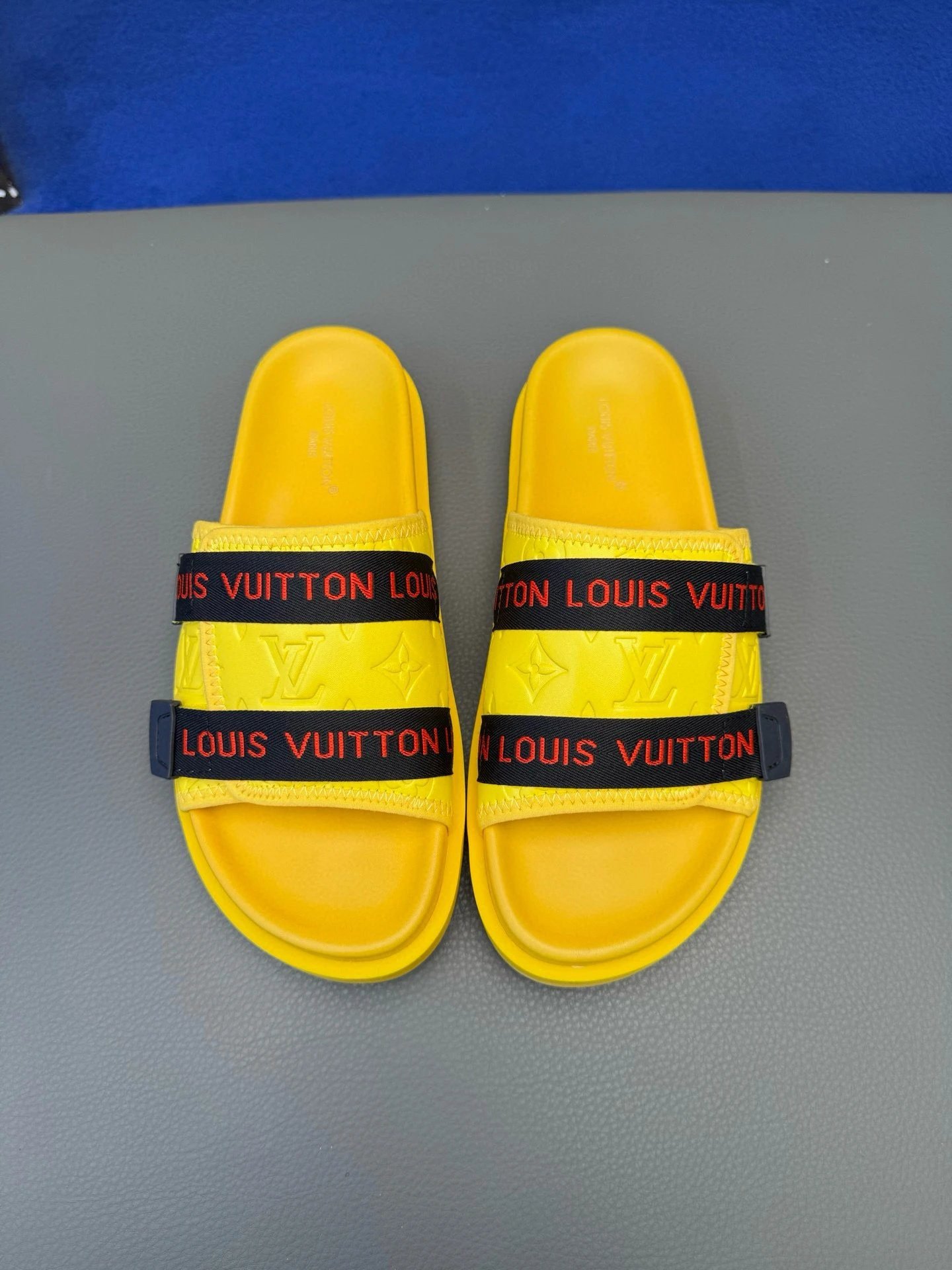 Louis Vuitton Classic Monogram Trendy Yellow Slide Sandals