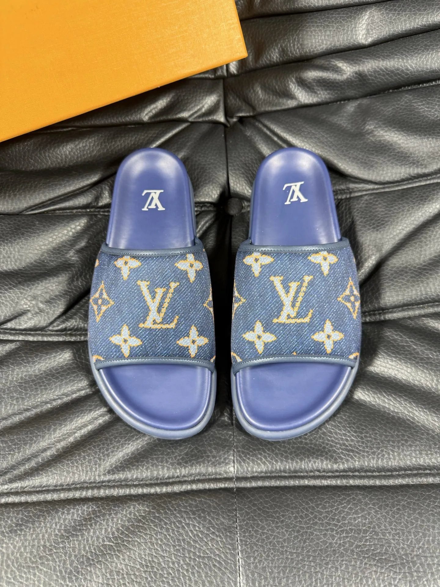 Louis Vuitton Classic Monogram Vintage Style Blue Slide Sandals