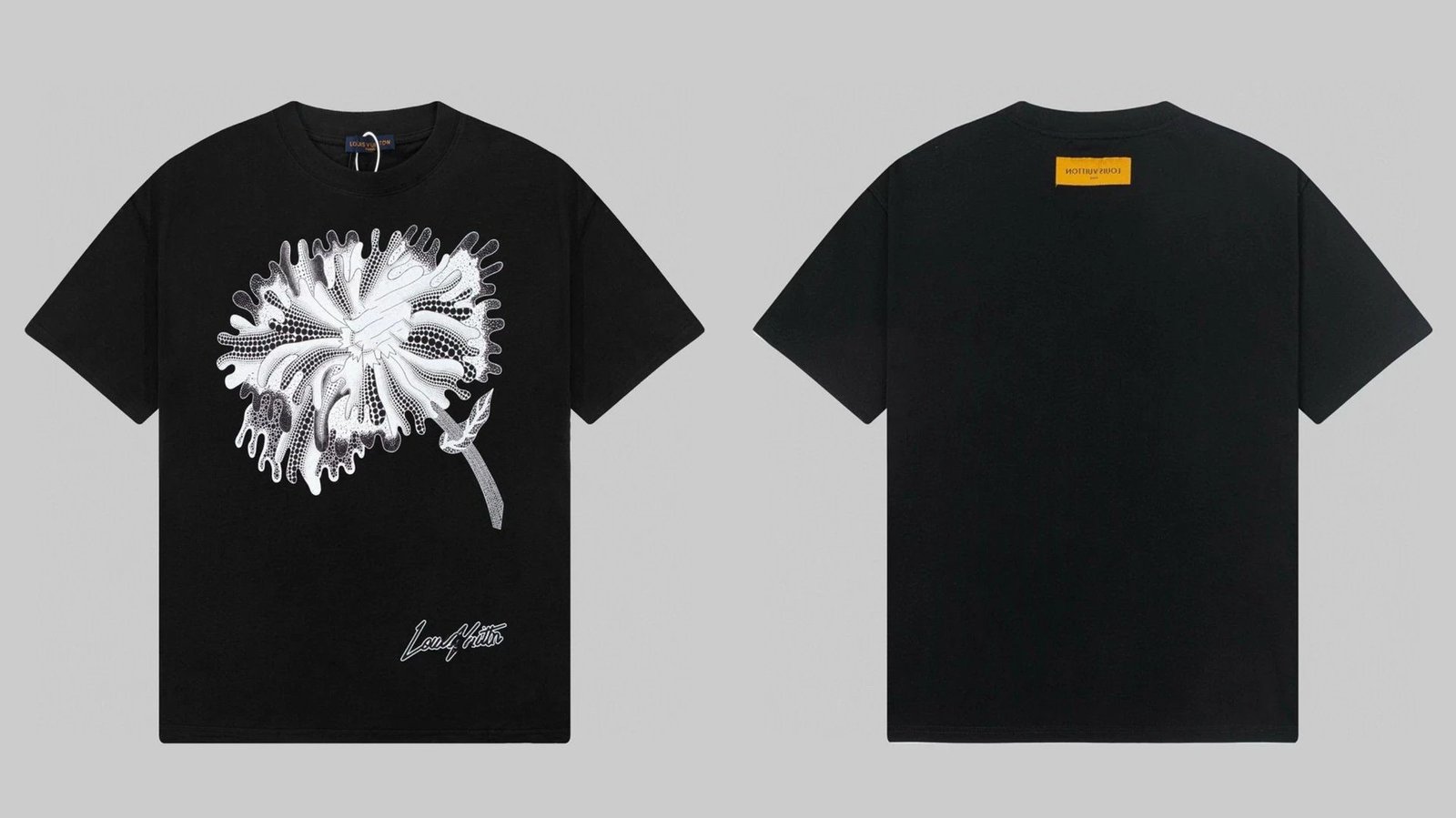 Louis Vuitton Dandelion Print Trendy Black T-Shirt, which belongs to the popular collection of the brand’s luxury streetwear line, is crafted from heavy-weight high-count combed pure cotton. It is skin-friendly and breathable, and remains structured and shape-retentive even after prolonged wear. The dandelion print adopts the brand’s positioned direct digital printing technology, boasting clear details and excellent color fastness. Combining the texture of high-end luxury brands with street casual style, this T-shirt is versatile for daily commuting and casual outings, and is a popular, well-received hit deeply sought after by global trendsetters in recent years.