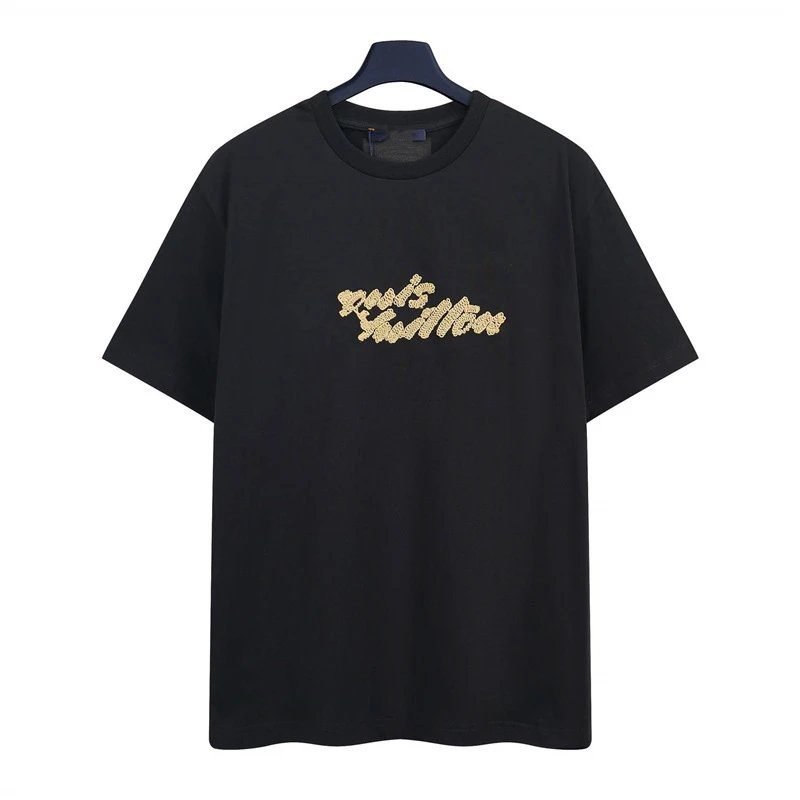 Louis Vuitton Embroidered Trend Collection Black Short-sleeve T-shirt is crafted from high-count skin-friendly pure cotton, adopts the brand’s iconic heavy-duty aligned embroidery craftsmanship, and is positioned as high-end street trend style. Featuring a loose and versatile fit and premium eye-catching texture, it is deeply sought after by fashion trendsetters around the world. Easy to match for daily outings and commuting, it is a highly popular casual item from Louis Vuitton.