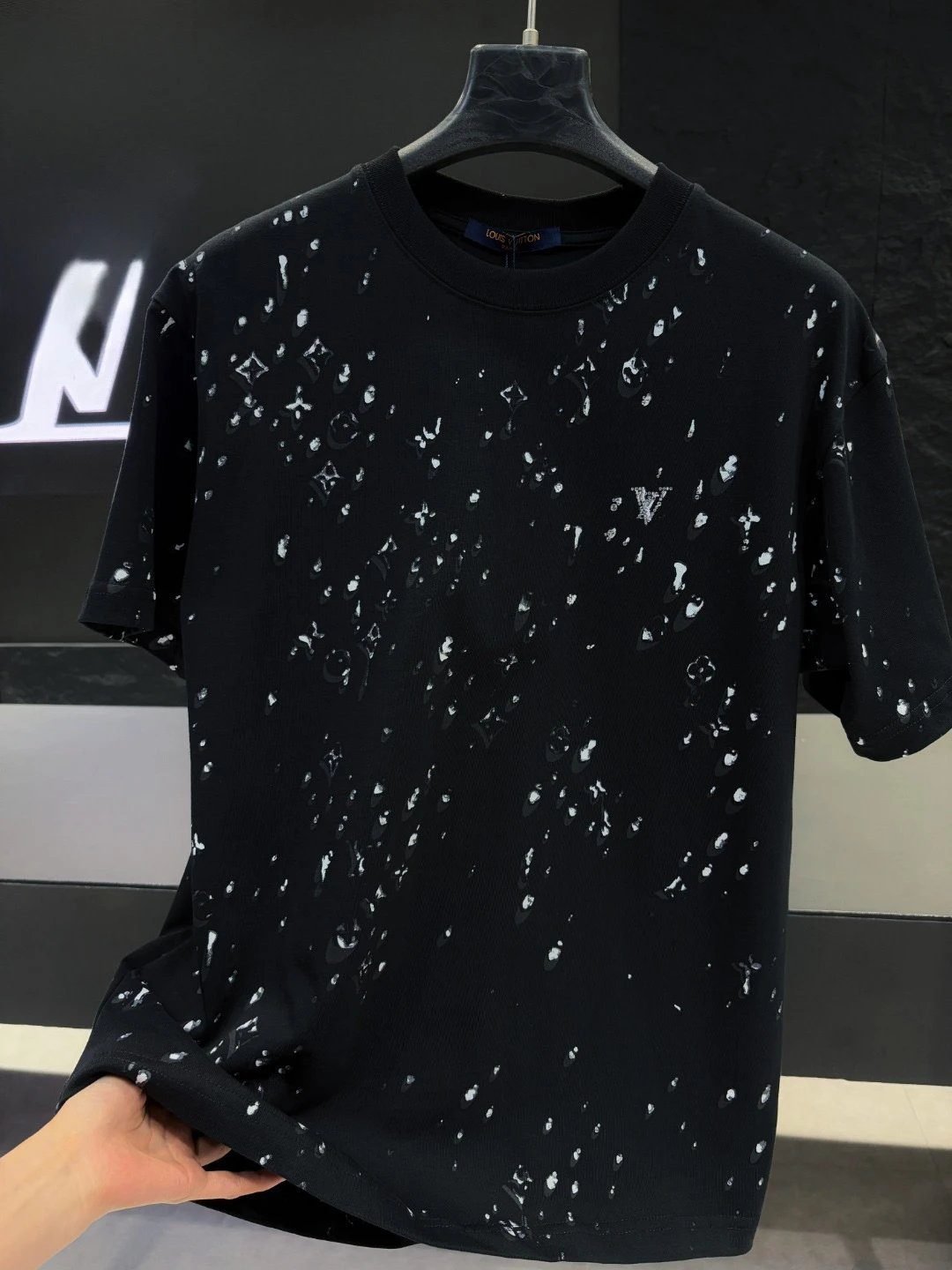 Louis Vuitton’s Classic Monogram Collection Cool Black Short-Sleeve T-Shirt is crafted from skin-friendly and breathable high-count pure cotton. Taking the brand’s iconic Monogram pattern as the base, it incorporates creative splash-ink craftsmanship to create a highly recognizable street cool style. It delivers a casual and uninhibited look when worn, and as a popular viral trendy hit of LV, it has long been favored by fashionistas across the globe. It is highly versatile and matches perfectly with all kinds of bottoms, and its reputation and popularity have remained consistently high for years.