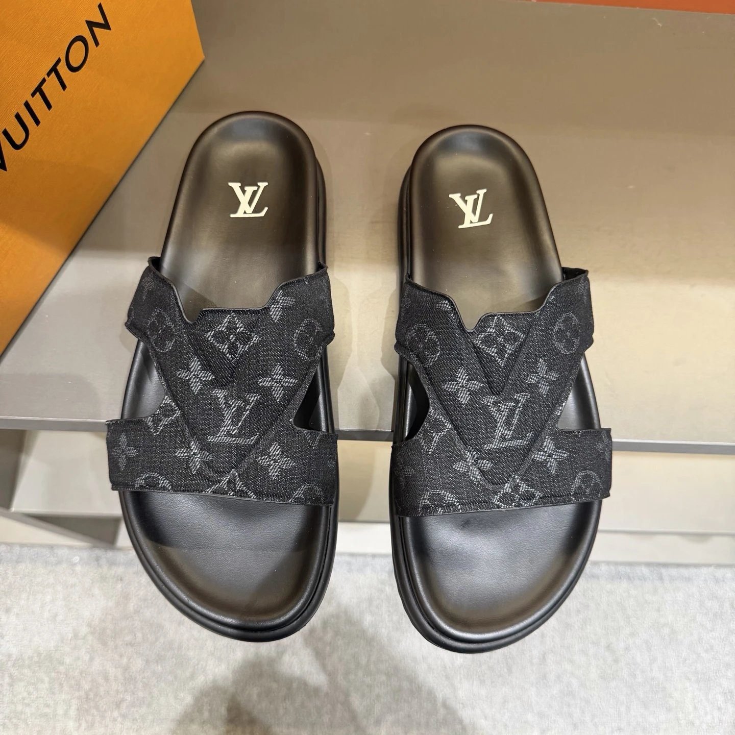 Louis Vuitton Monogram Light Luxury Style Black Slides