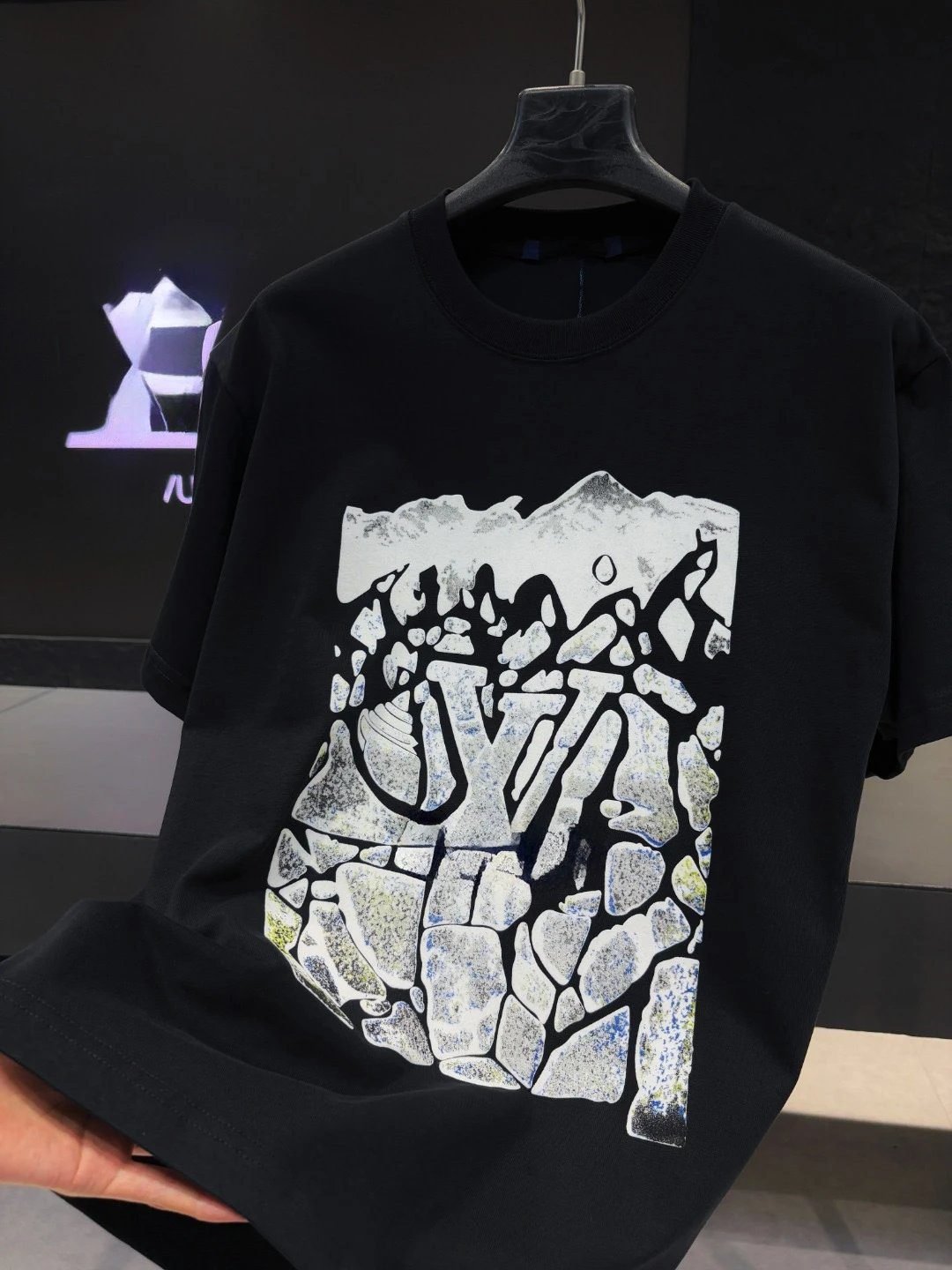 Louis Vuitton Mountain Stone Print Street Style Black T-Shirt