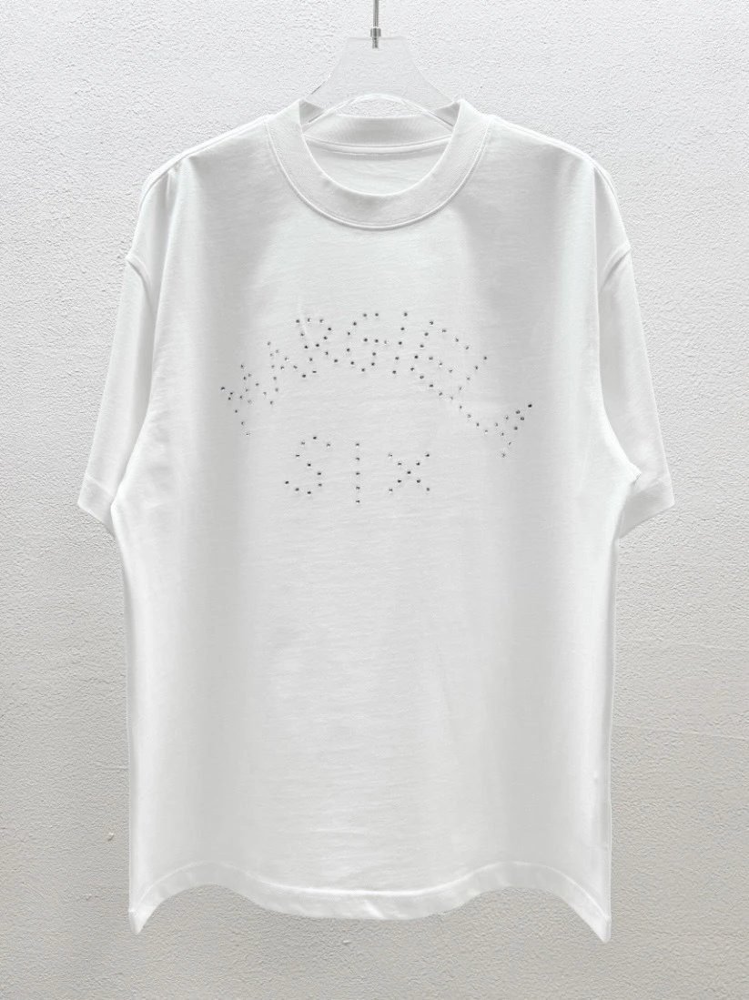 This is a trendy street-style white short-sleeve T-shirt from the MM6 line of Maison Margiela. Made of high-weight combed pure cotton, the iconic number 6 on the chest is processed with eco-friendly color-fast rubber printing, which is not easy to peel off or fade. Featuring an avant-garde deconstructed minimalist style, it is low-key yet boasts distinct brand recognition, and is suitable for casual outings and daily commuting. It pairs perfectly with jeans and sweatpants, and is a classic entry-level Maison Margiela item deeply sought after by fashionistas around the world.