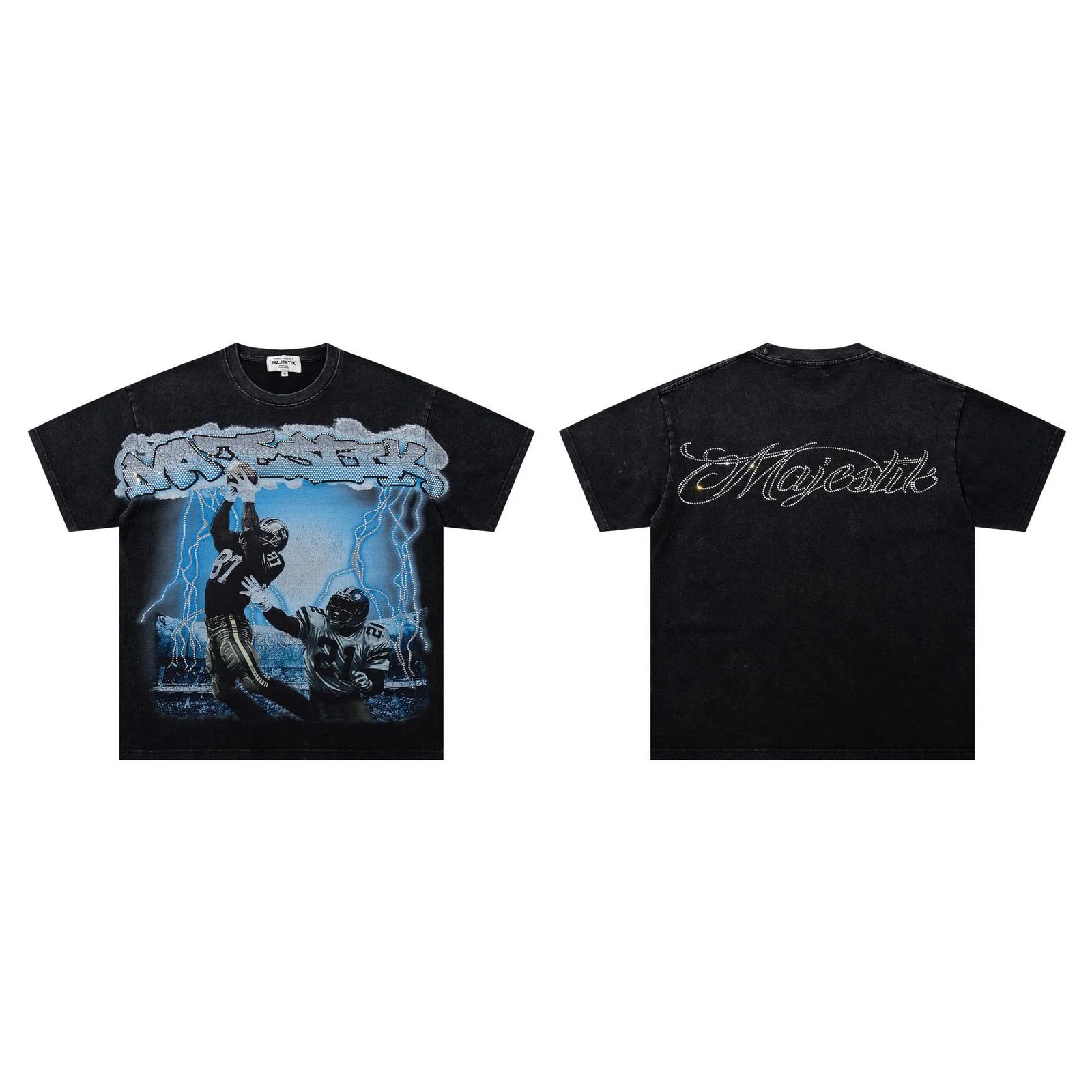 Trendy brand MAJESTIK’s American retro distressed black T-shirt from the rugby collection is crafted from heavyweight pure cotton fabric, which is skin-friendly, breathable, stiff and well-shaped. The distressed washing process restores the retro mottled texture. Featuring the signature American street retro style, it fits various daily street outfits and is a well-received hit sought after by retro trend enthusiasts. It is personalized, eye-catching and boasts full recognizability when worn.
