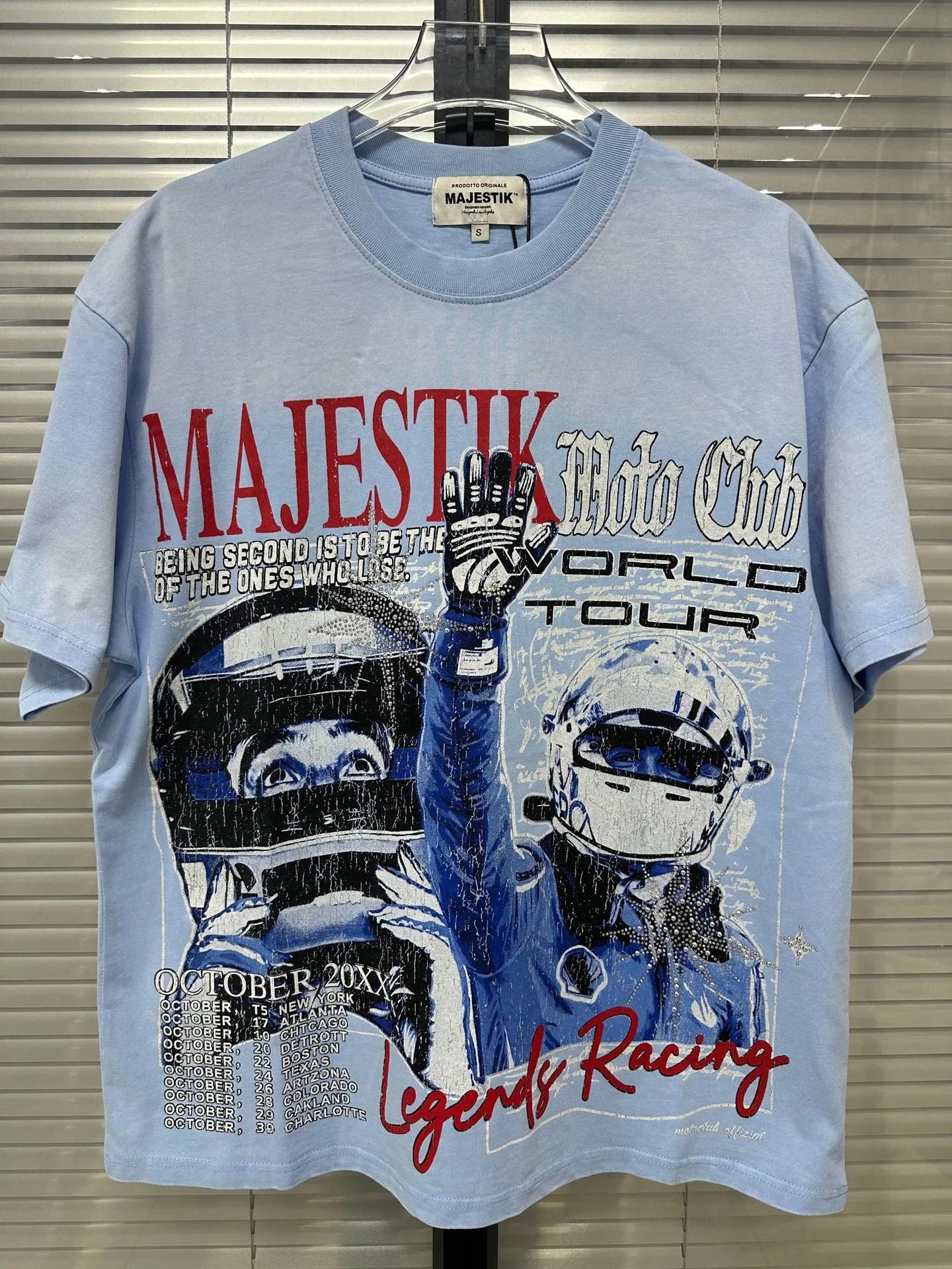 MAJESTIK Racing Vintage Style Light Blue T-Shirt