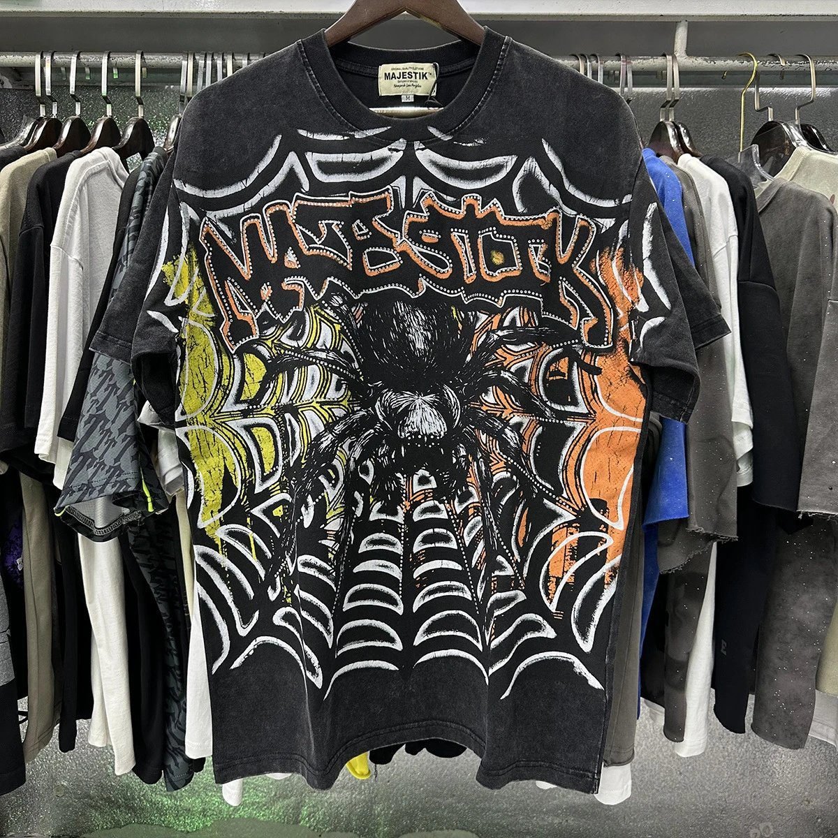 MAJESTIK Spider Street Style Distressed Black Short-sleeve T-Shirt