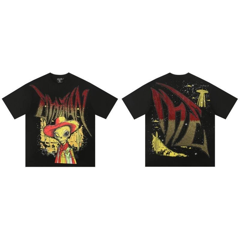 Mixed Emotion Alien Cowboy Street Style Black T-Shirt
