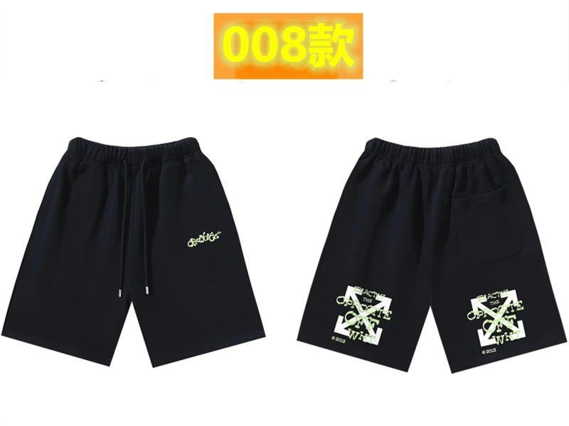This is a pair of Trendy Black Shorts from the Off-White Style 008 series. It is made of high-quality fabric and has exquisite craftsmanship. Black is versatile and shows off a trendy style. As a representative of trendy brands, Off-White is famous for its unique designs. This pair of shorts is even more a fashion focus and is deeply loved by trendsetters. It is a must-have item to show personality and a trendy attitude.