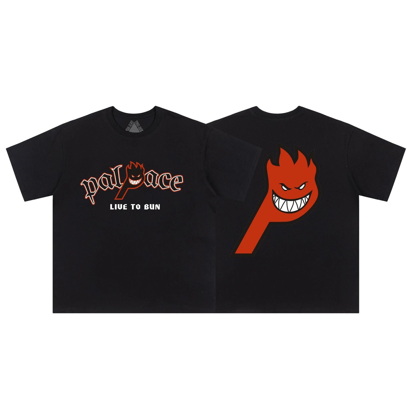 Palace Flame Print Street Style Black Short-sleeve T-shirt
