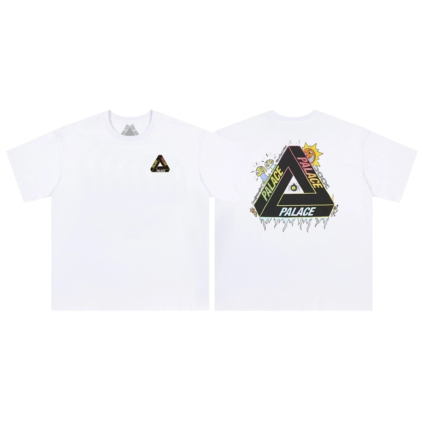 White short-sleeve street-style T-shirt from the Triangular Graffiti Collection of British streetwear brand Palace is crafted from heavy-weight pure cotton fabric, which is breathable, skin-friendly, structured and not easily deformed. The iconic triangular graffiti is made with high-precision screen printing technology, featuring full and vibrant color that will not fade or crack. With an authentic street skateboarding style, it is casual and eye-catching, a hot item highly sought after by fashionistas around the globe, and is versatile for daily outings and fits all wearers.
