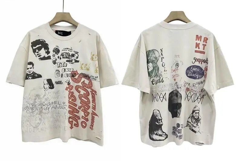 Paly Hollywood Graffiti Vintage Off-White T-Shirt is a popular trendy item from the brand’s American Retro collection. Crafted from heavyweight pure cotton, it adopts vintage distressed washing and color-fixed graffiti craftsmanship. With a vintage off-white base matched with personalized street graffiti, it boasts an authentic American street retro style. It is comfortable, breathable and easy to style, and looks stunning paired with workwear or jeans for great photos. Loved by trendsetters all over the world, it is a popular trendy T-shirt with outstanding reputation in the global trend circle.