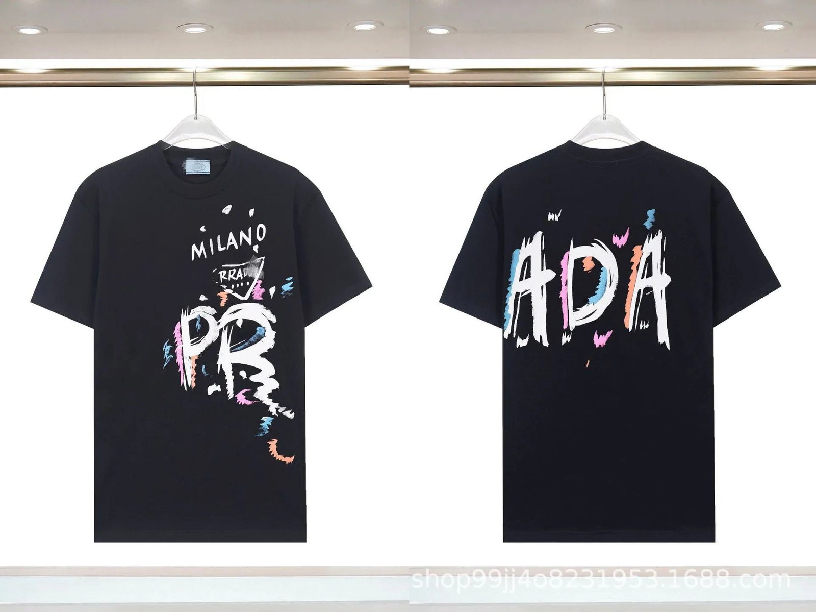 This is a street-style black short-sleeve T-shirt from the graffiti collection launched by luxury brand Prada. Made of heavyweight high-count pure cotton, it is breathable, skin-friendly and nicely structured in shape. It adopts high-colorfastness direct digital printing technology to restore the original authentic street graffiti texture, with full color rendering that is not easy to fade and extremely eye-catching appeal. As a popular trendy item from Prada, it is deeply loved by fashionistas around the world, and it is casual, versatile and perfect for daily outings.