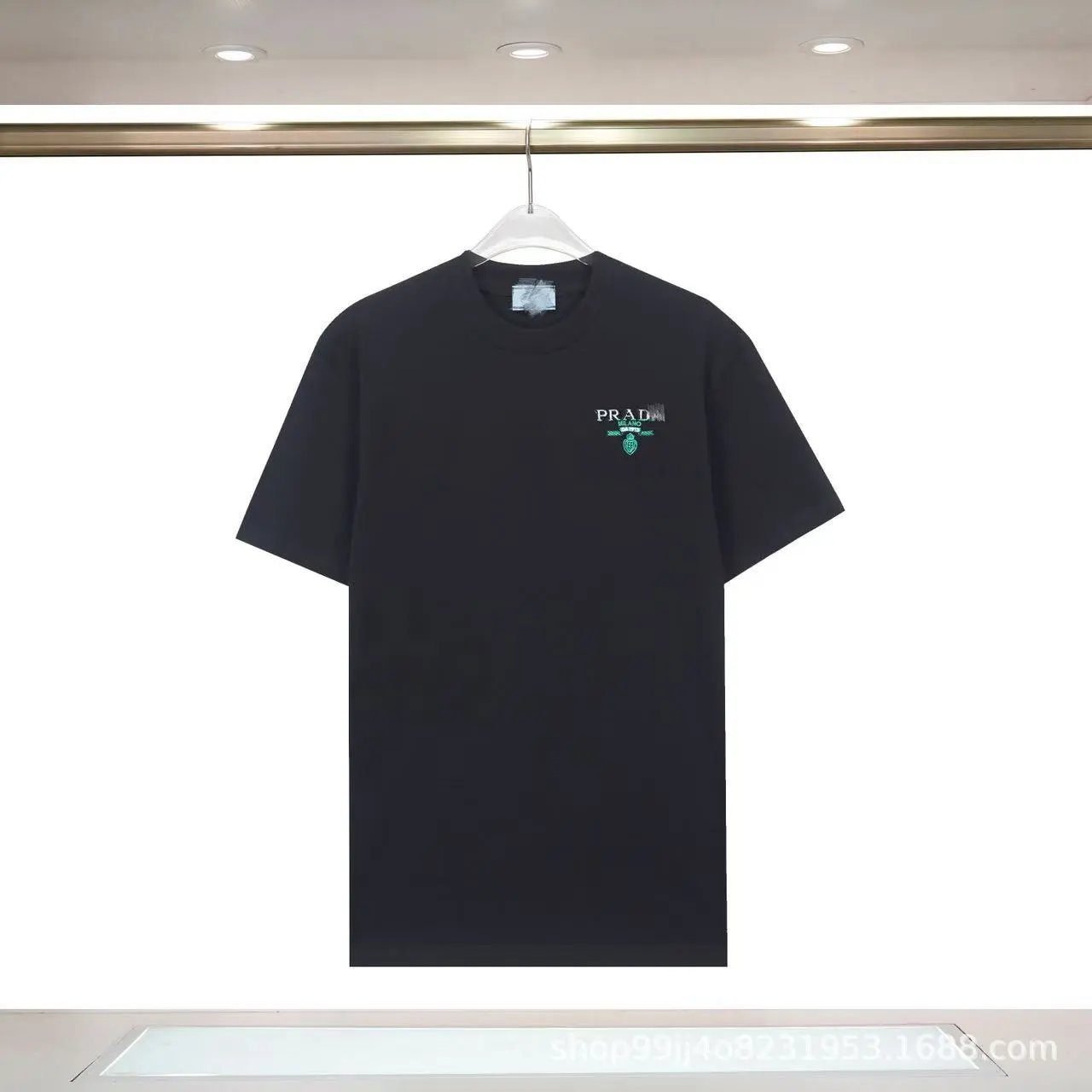 Black short-sleeve T-shirt from the classic logo collection of Italian luxury brand Prada. It is crafted from high-count combed pure cotton fabric, which is skin-friendly, breathable, structured and wrinkle-resistant. The brand’s iconic triangular logo adopts exquisite screen printing technology, with neat and firm stitching. The overall piece features a minimalist and sophisticated light luxury style, and matches well with all types of bottoms. As a perennial best-selling hit item of Prada, it is deeply sought after by fashionistas around the world, and can be easily styled for daily outings, commuting and leisure occasions.