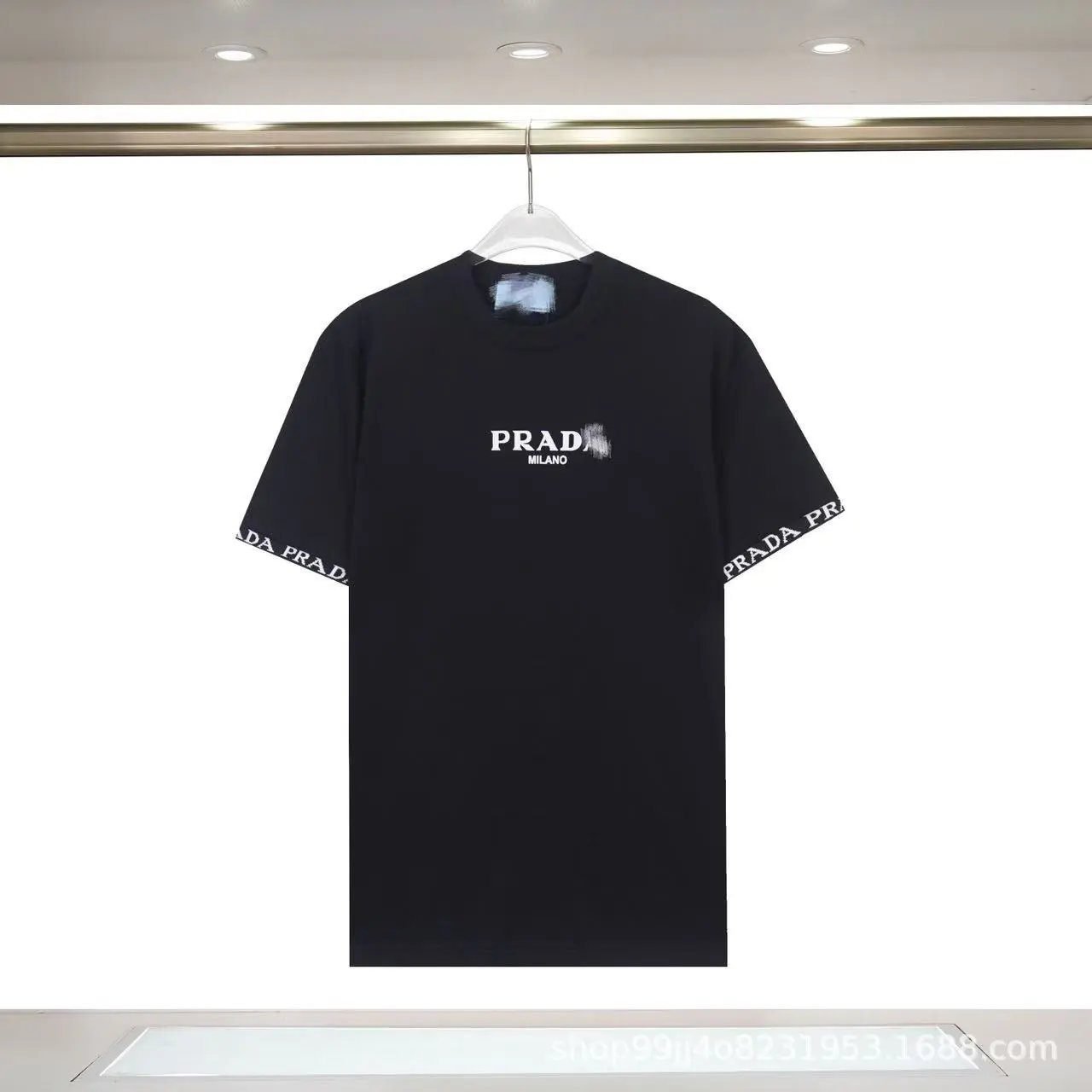 Prada Classic Webbing Trend Style Series Black Short-sleeve T-Shirt is crafted from skin-friendly, breathable high-count combed pure cotton, featured with the brand’s iconic color-blocked webbing decoration technique, precise stitching and neat workmanship, creating a highly recognizable trendy-luxury street style. The inclusive fit fits all body types, and it is versatile for daily commuting and casual outings. It is a classic entry-level trendy item of Prada deeply sought after by fashionistas around the world.