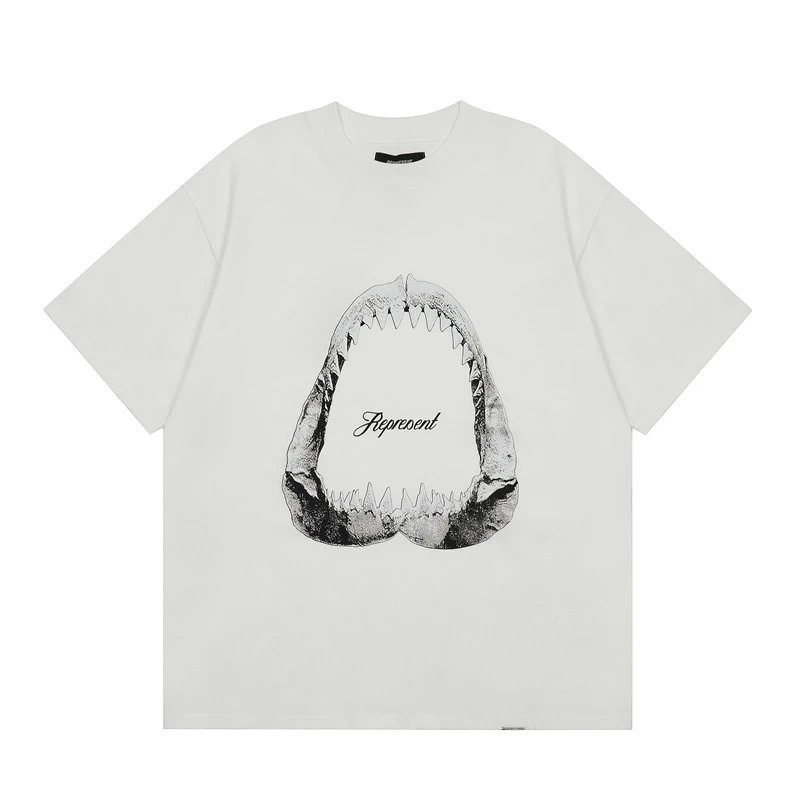 This is the white short-sleeve T-shirt from the shark jaw print collection of Represent, a popular American high-street streetwear brand. Made of heavyweight pure cotton, it is skin-friendly, breathable, stiff and well-shaped. It adopts high-definition direct digital printing technology, with clear patterns that are wash-resistant and do not fade. Featuring the iconic high-street street style, it is casual, eye-catching and extremely versatile. It is deeply loved by trend enthusiasts around the world and is a popular well-reputed trendy item.