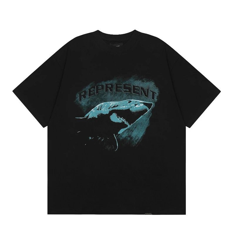 Represent, America’s top high-street streetwear brand, classic shark print series vintage black short-sleeve T-shirt.