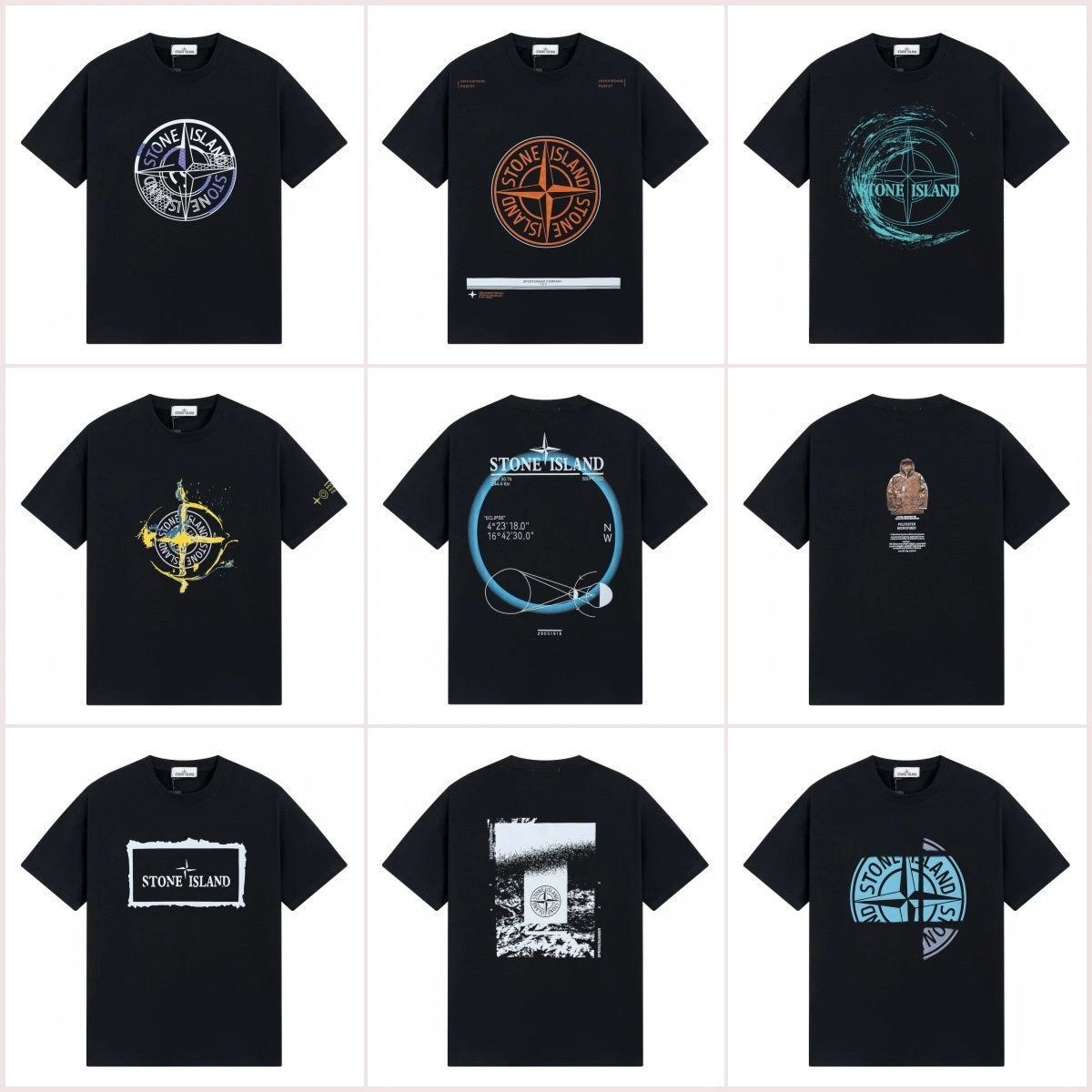 Stone Island Compass Print Series Street Style Black Short-sleeve T-shirt, a classic item from the high-end Italian trendy brand. It is crafted from heavy-weight high-count pure cotton, which is breathable, skin-friendly and can keep its shape after repeated washing. The high-fastness positioning printing process keeps the pattern clear and colorfast. Its hardcore street style has extremely high recognition, deeply loved by trend lovers all over the world, and enjoys consistent high popularity and great reputation. It matches perfectly with workwear and jeans for daily styling.