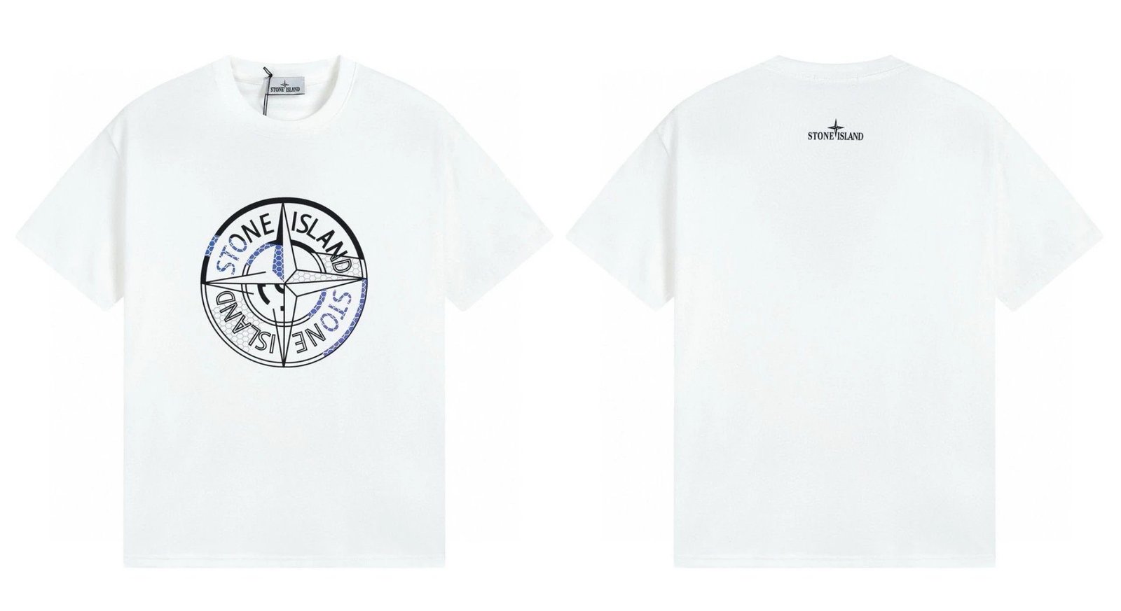 Stone Island, the streetwear fashion brand, Compass Print Series White Street Style Short-sleeve T-shirt. It is crafted from selected breathable and skin-friendly high-count pure cotton fabric, adopts the brand’s exclusive high-precision positioning printing process, and features clear brand marks that are wash-resistant and fade-resistant. Featuring a casual cool street style, it is a popular entry-level classic item of Stone Island, deeply sought after by global trendsetters. It is highly versatile for daily wear, perfect for taking impressive photos, and enjoys an outstanding reputation among fashion lovers.