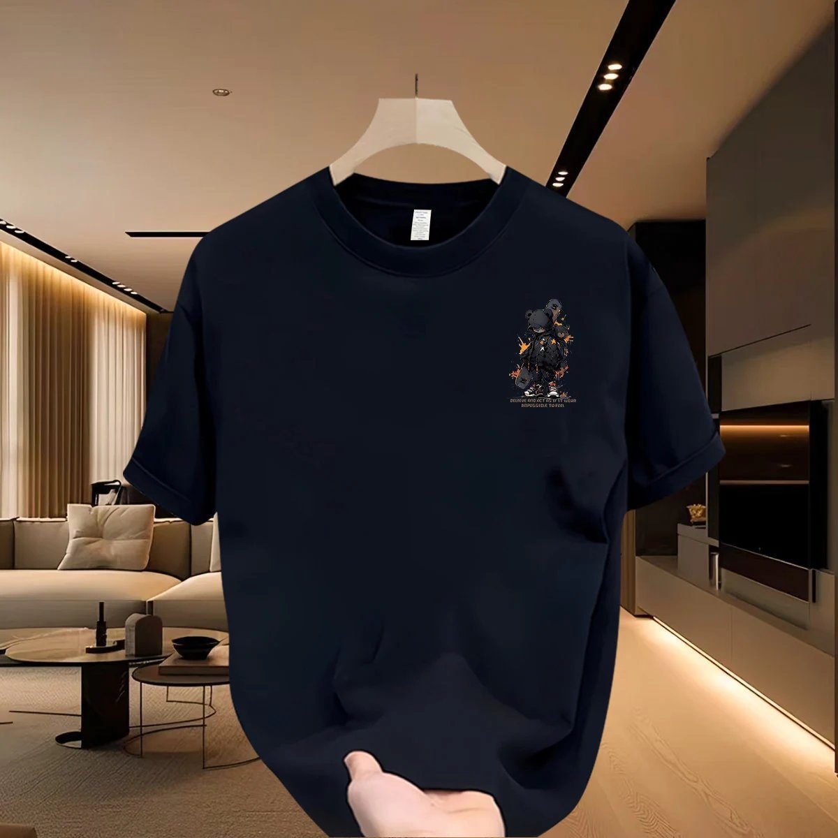 This is the mechanical bear series navy short-sleeve T-shirt from Instagram’s trending streetwear brands. Crafted from heavyweight combed pure cotton, it adopts high-fastness direct digital printing technology to create a three-dimensional mechanical bear print that will not fade or crack. Boasting an authentic street cool style, its loose fit offers great inclusivity for different body shapes. It is extremely eye-catching when paired with cargo pants or jeans for summer, and is a breakout summer hit deeply sought after by young trendsetters.