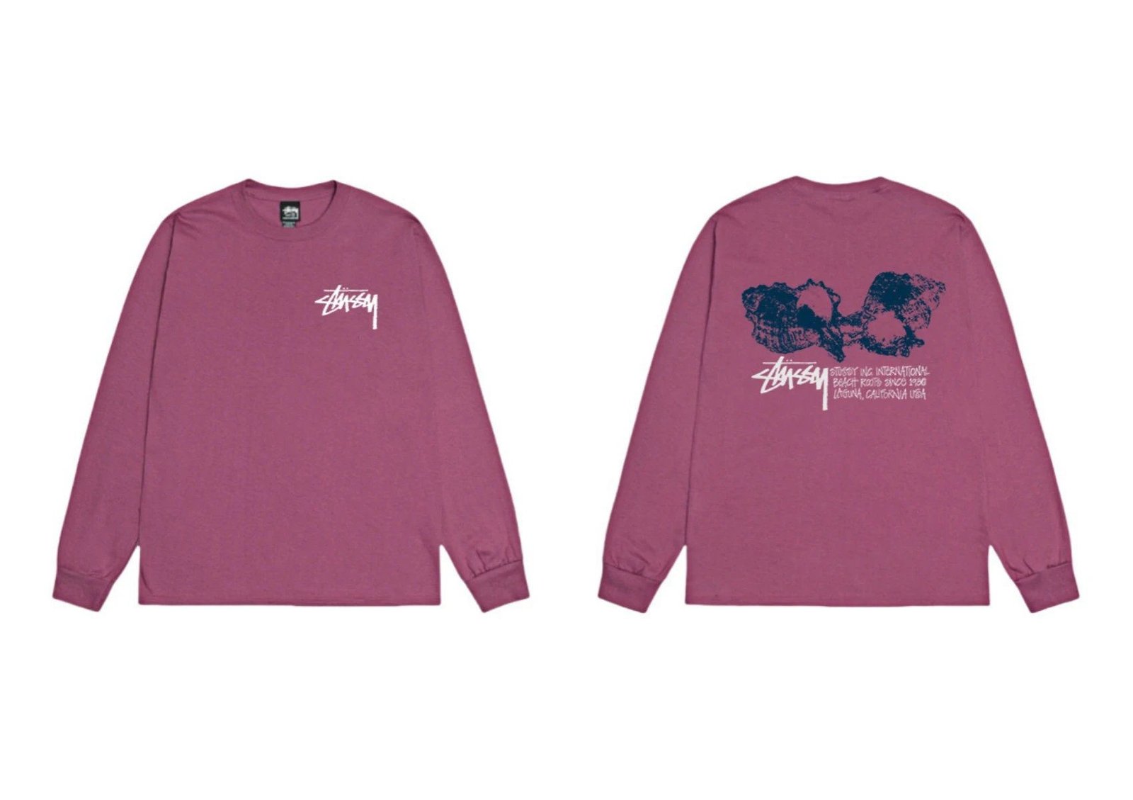 Stussy printed retro style rose red long sleeves