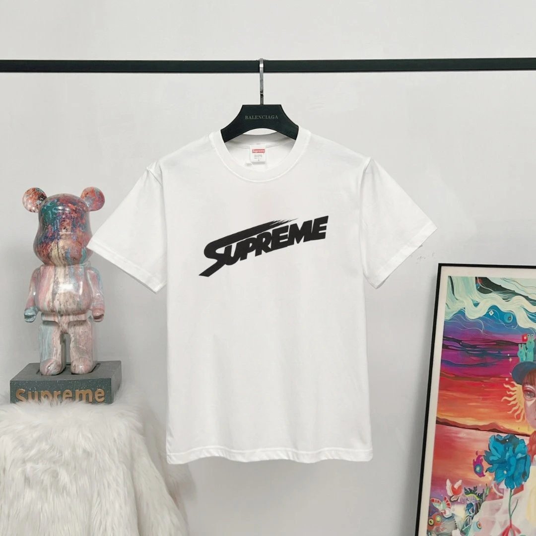 Top American streetwear brand Supreme’s slanted logo printed street-style white short-sleeve T-shirt is crafted from high-GSM heavyweight pure cotton, which is skin-friendly, breathable, structured and retains its shape well. The signature slanted logo print adopts professional color fixation technology, which is wash-resistant, fade-proof and wrinkle-resistant. Featuring a loose fit that suits various styling, this T-shirt is one of the brand’s most classic entry-level styles, popular among streetwear enthusiasts around the globe. It is eye-catching and versatile for daily outings, making it a must-have basic item for all streetwear lovers.