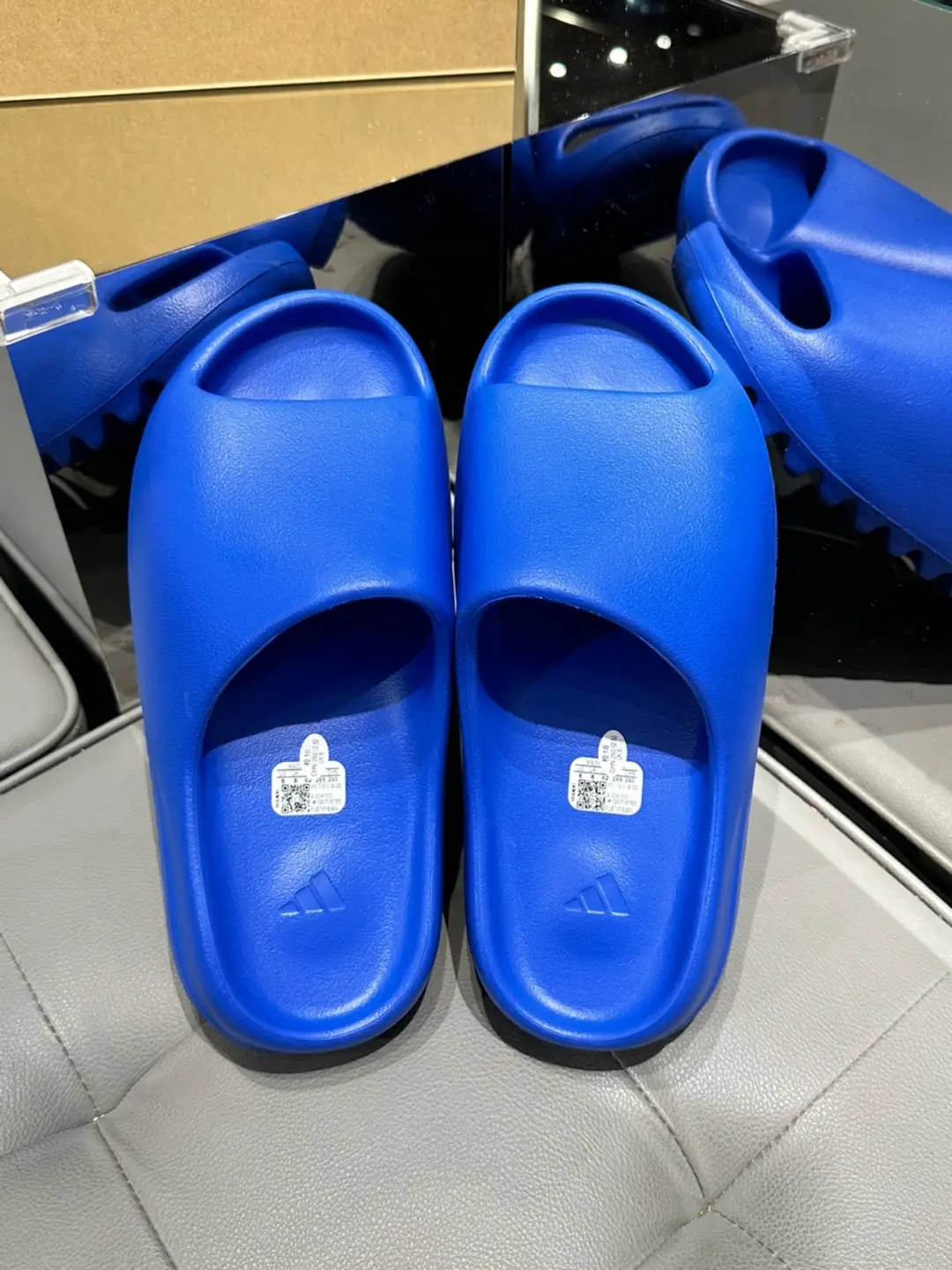 Yeezy slippers—these are a must-have. I went with the LP version, which features a one-piece molded foam construction. They’re incredibly comfortable to wear, so I recommend sizing up. I bought both black and blue pairs to switch between. They’re perfect as loungewear at home, great for taking out the trash, and absolutely perfect for the beach.